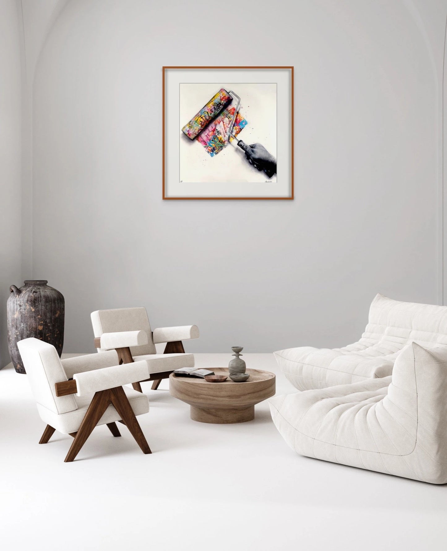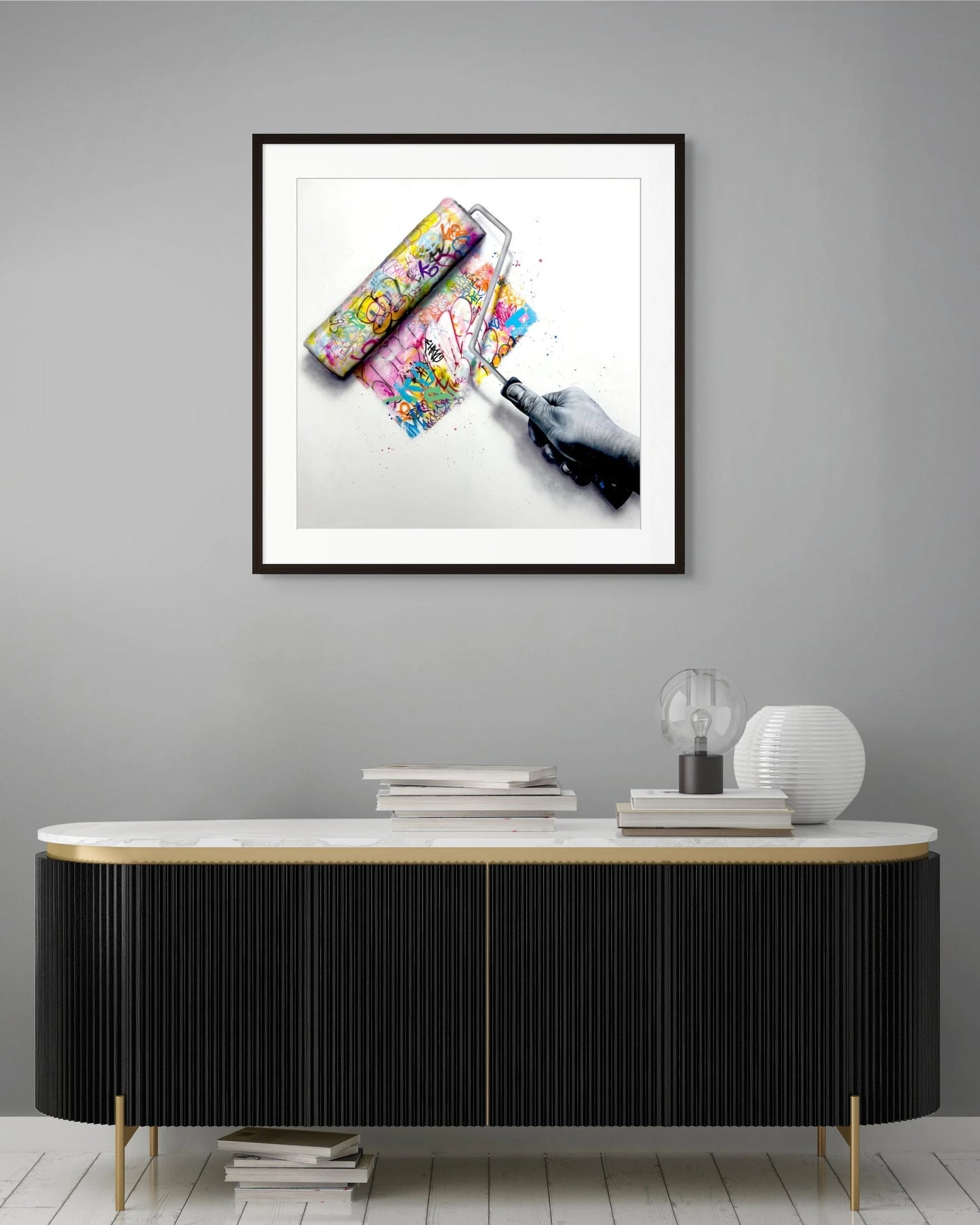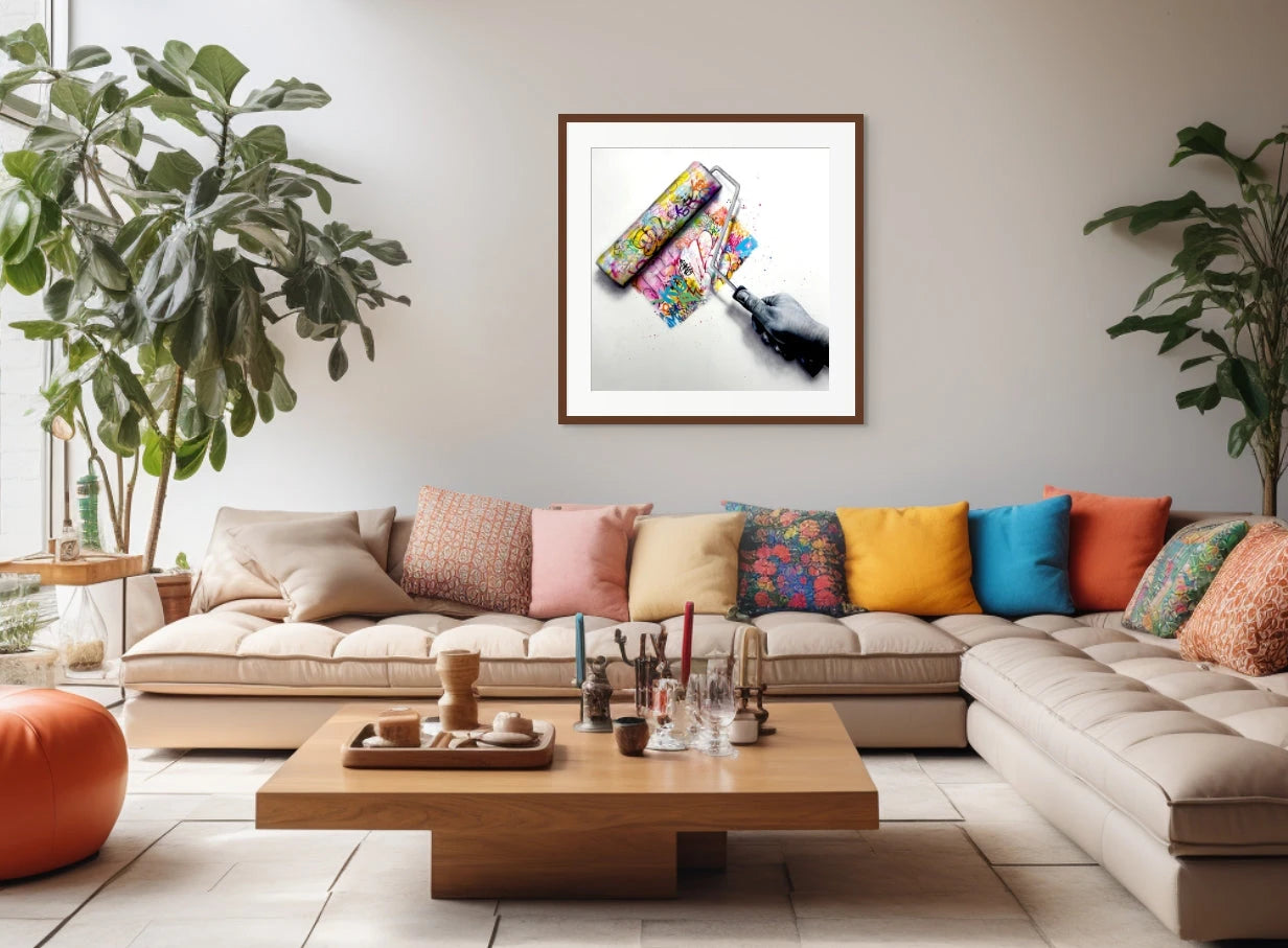 Yet, held firmly in the hand's grasp is a paint roller drenched in vibrant graffiti, poised to roll across the canvas. This multi-colored roller stands out against the otherwise monochrome theme, symbolizing the eye-opening discovery of art and the profound impact it had on Onemizer's life.