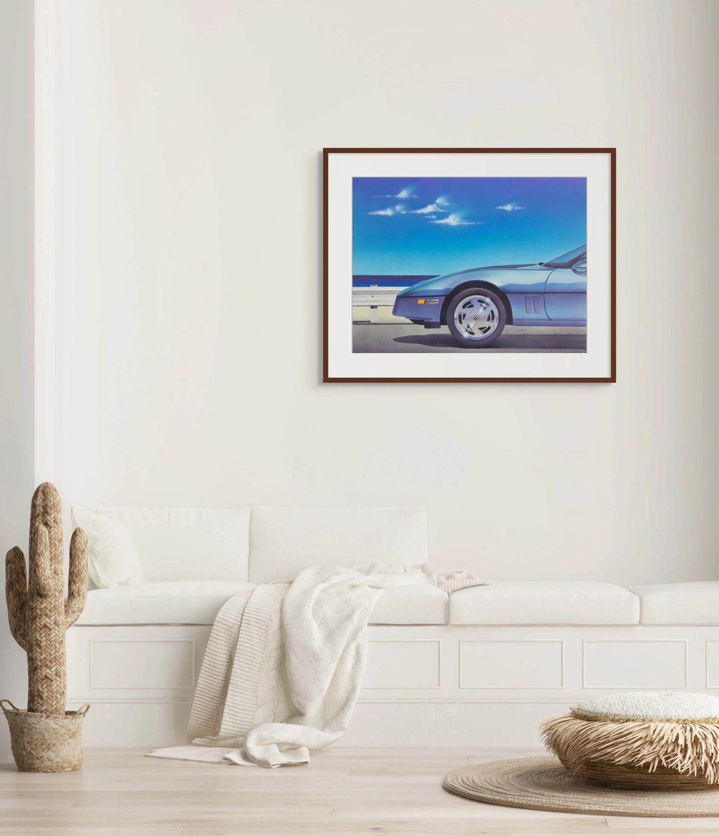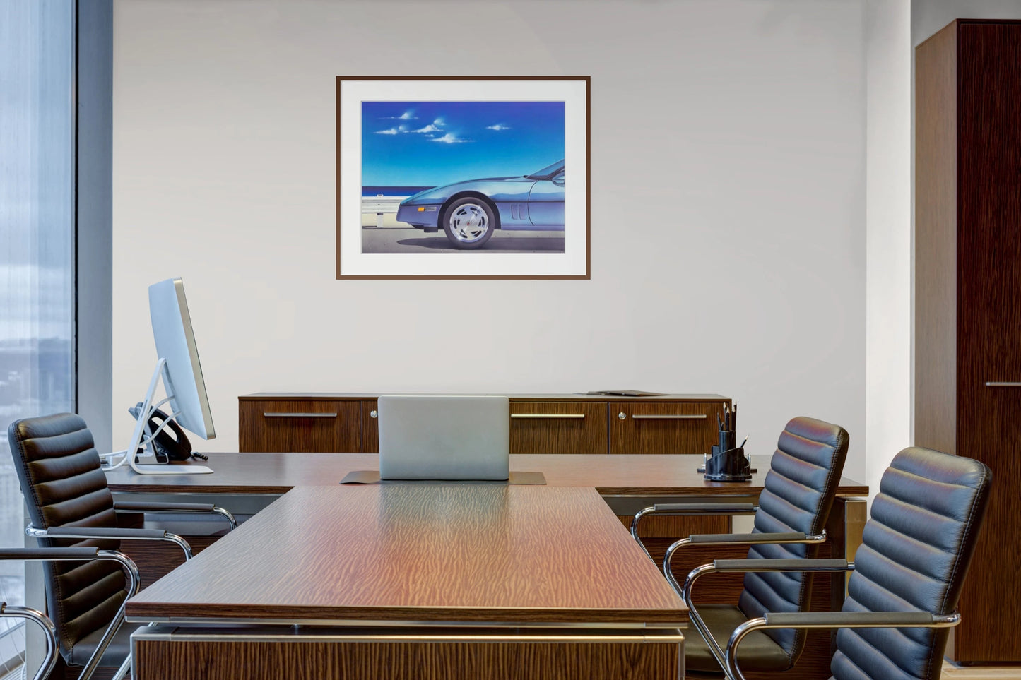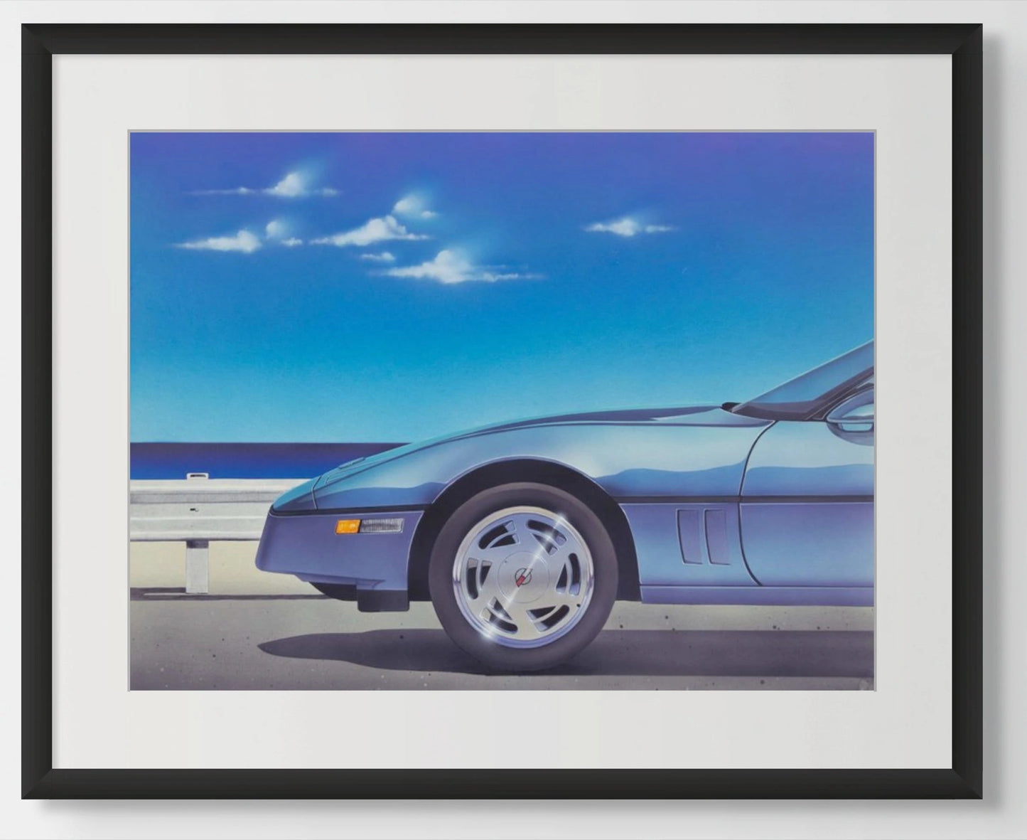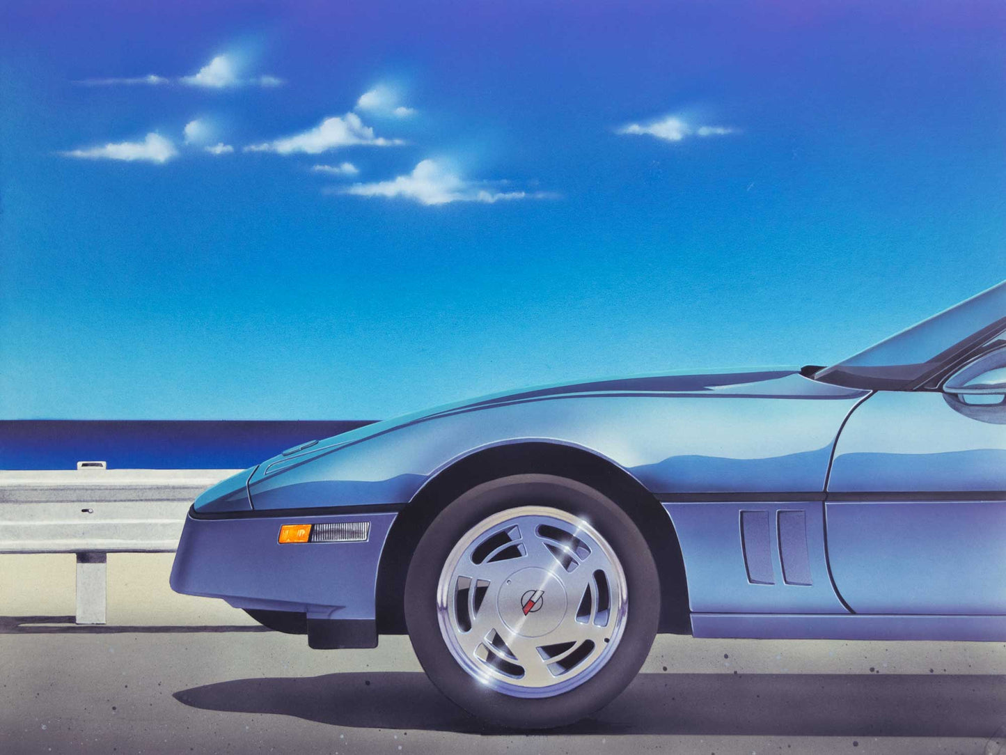 Corvette is a handmade painting on illustration board by Bern Foster presents an arresting depiction of an automotive scene, with the meticulous precision of photorealism.