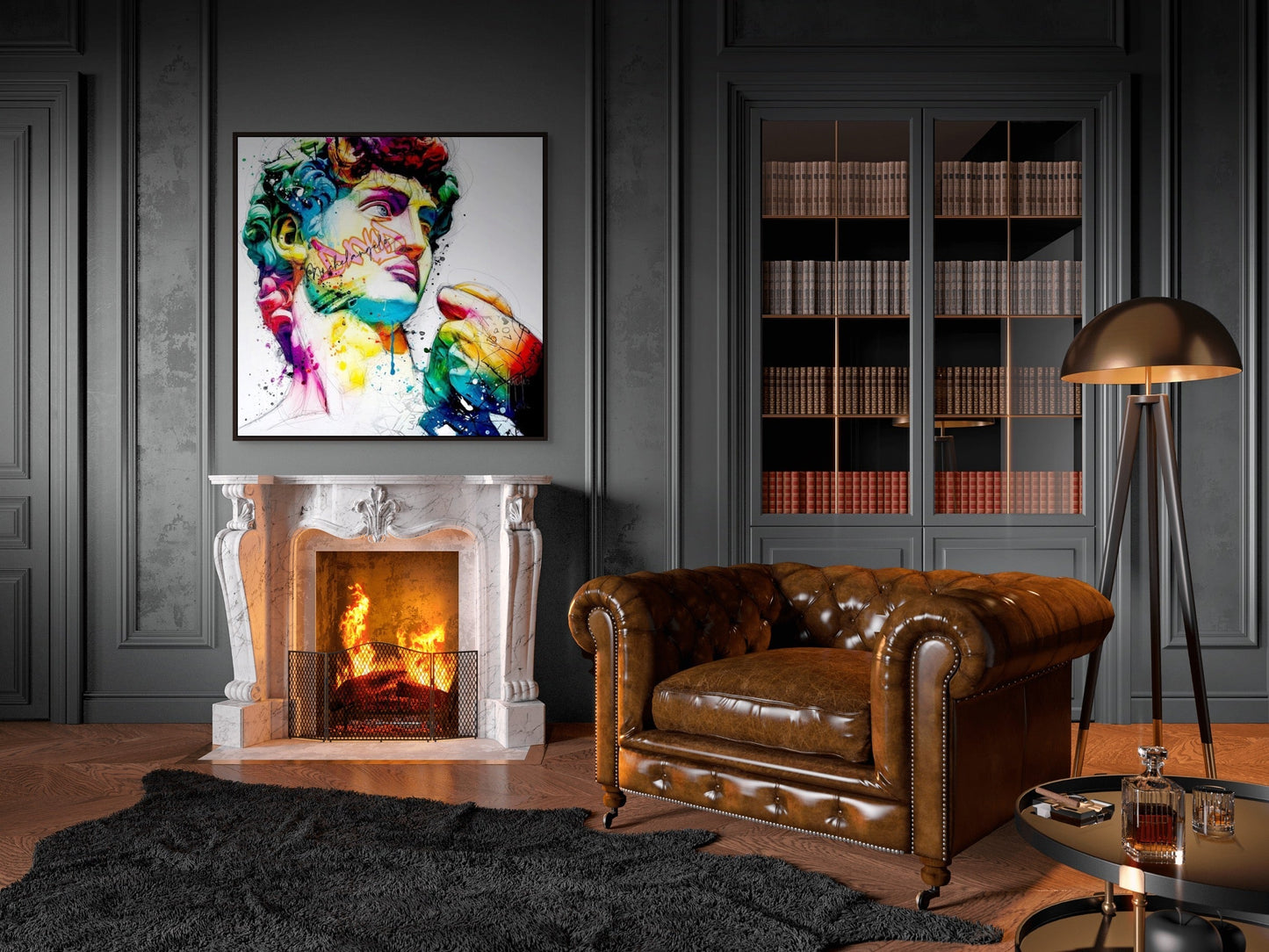The use of color in this painting is not just for decoration. It adds depth and emotion to David's face. The splashes of color make you see the statue in a new light, giving it a sense of movement and life.