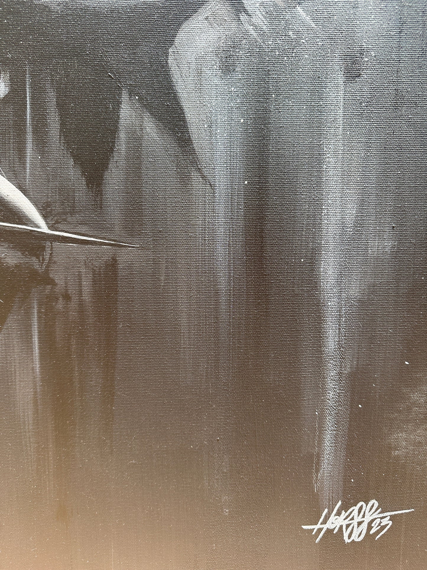 Since 2019, he has become passionate about painting with a pretty realistic style and a black and white universe. He adapts his creations on eclectic supports, which he creates or reuses.