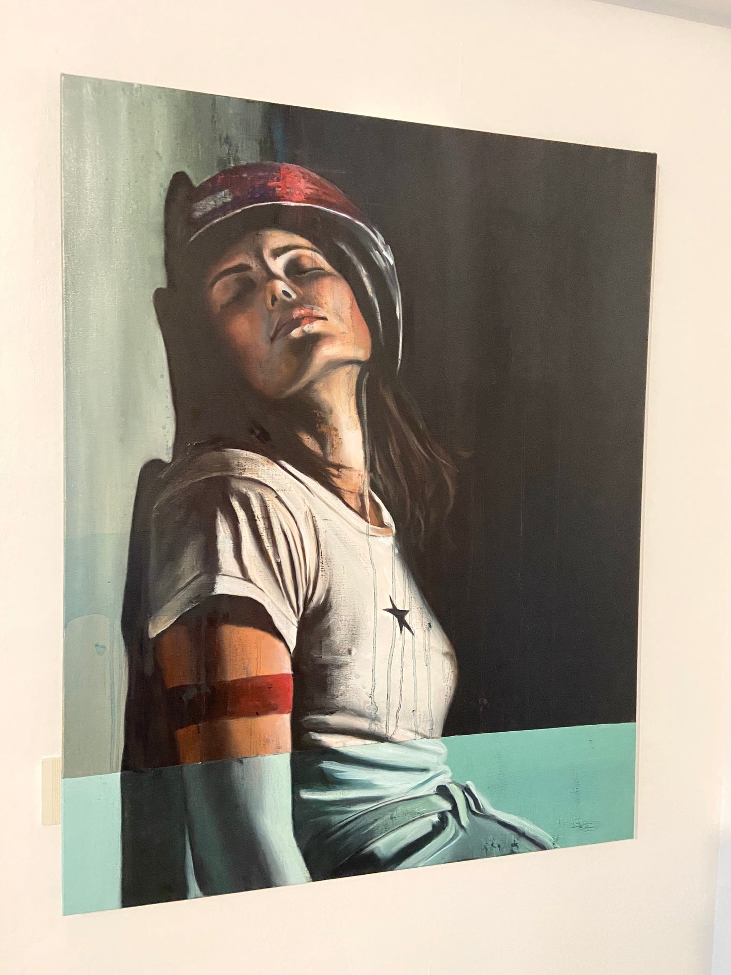 It is around this axis that he will direct his new project « American Rebel Girls », at the cost of doing a 180 on his previous works. He turns this time to the rebel side of the young American women of the 80/90's he loves, working in acrylic on linen canvas on medium and large formats, he created a whole series of women from different states of the US by the expression of their posture, whether haughty, provocative, haggard, mysterious; defending their own ideas. A series with figurative style, grunge, unstructured, without rules, singular with a zest of abstract is how he defines his expression. Erasing their eyes to keep their anony- mity, he draws the eye on the posture and body language of each of these women caricature in his own way.