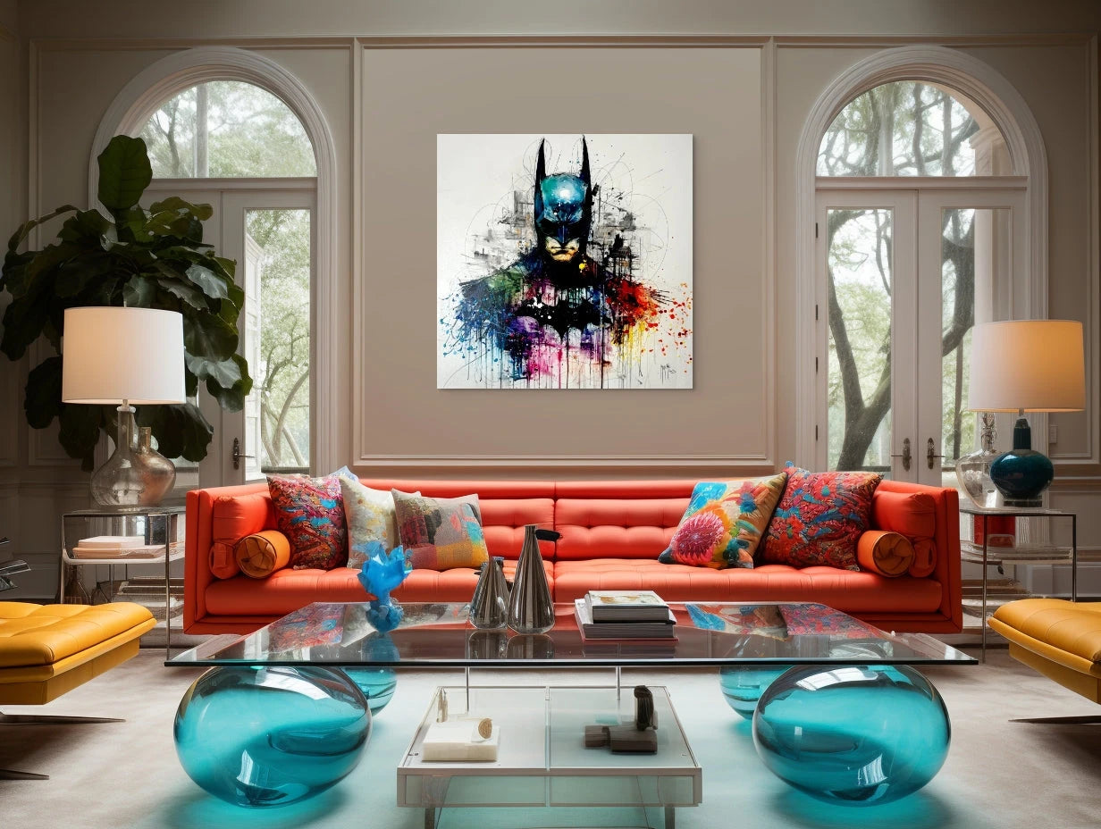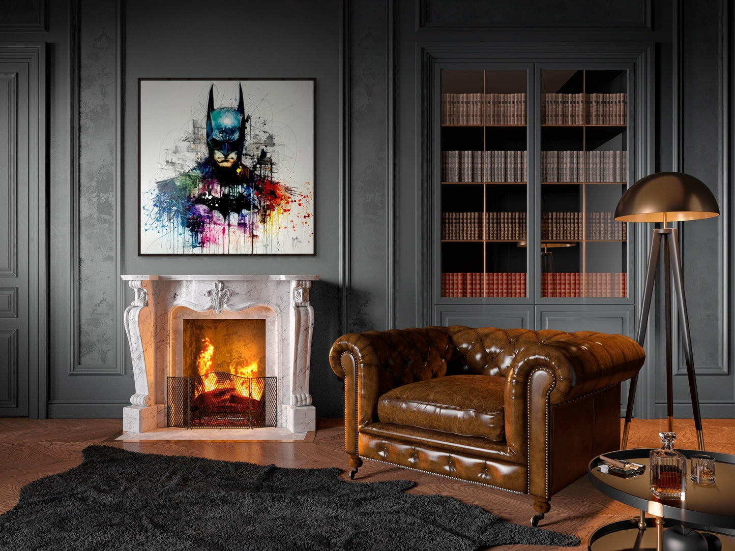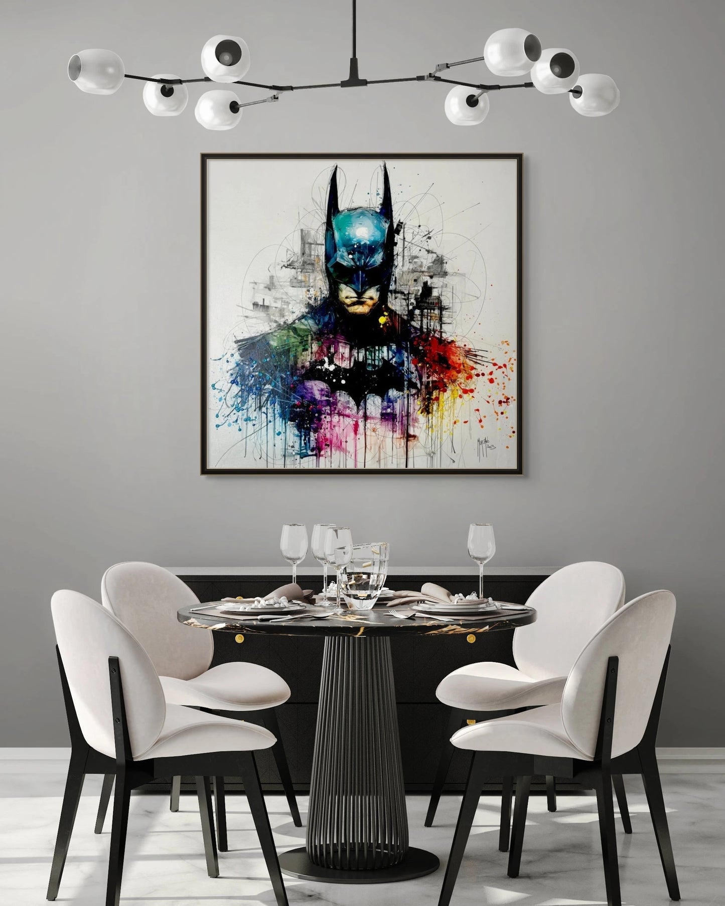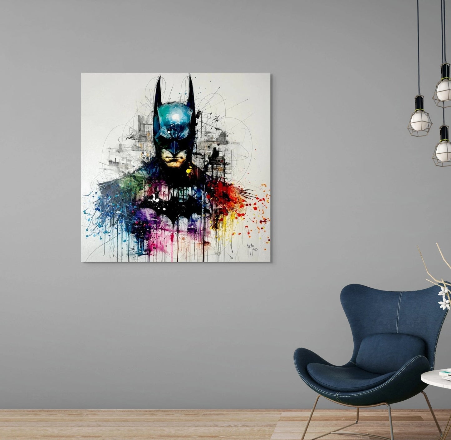 This painting would be a perfect addition for fans of Batman, as well as those who appreciate contemporary art that pushes the boundaries of traditional comic book imagery.
