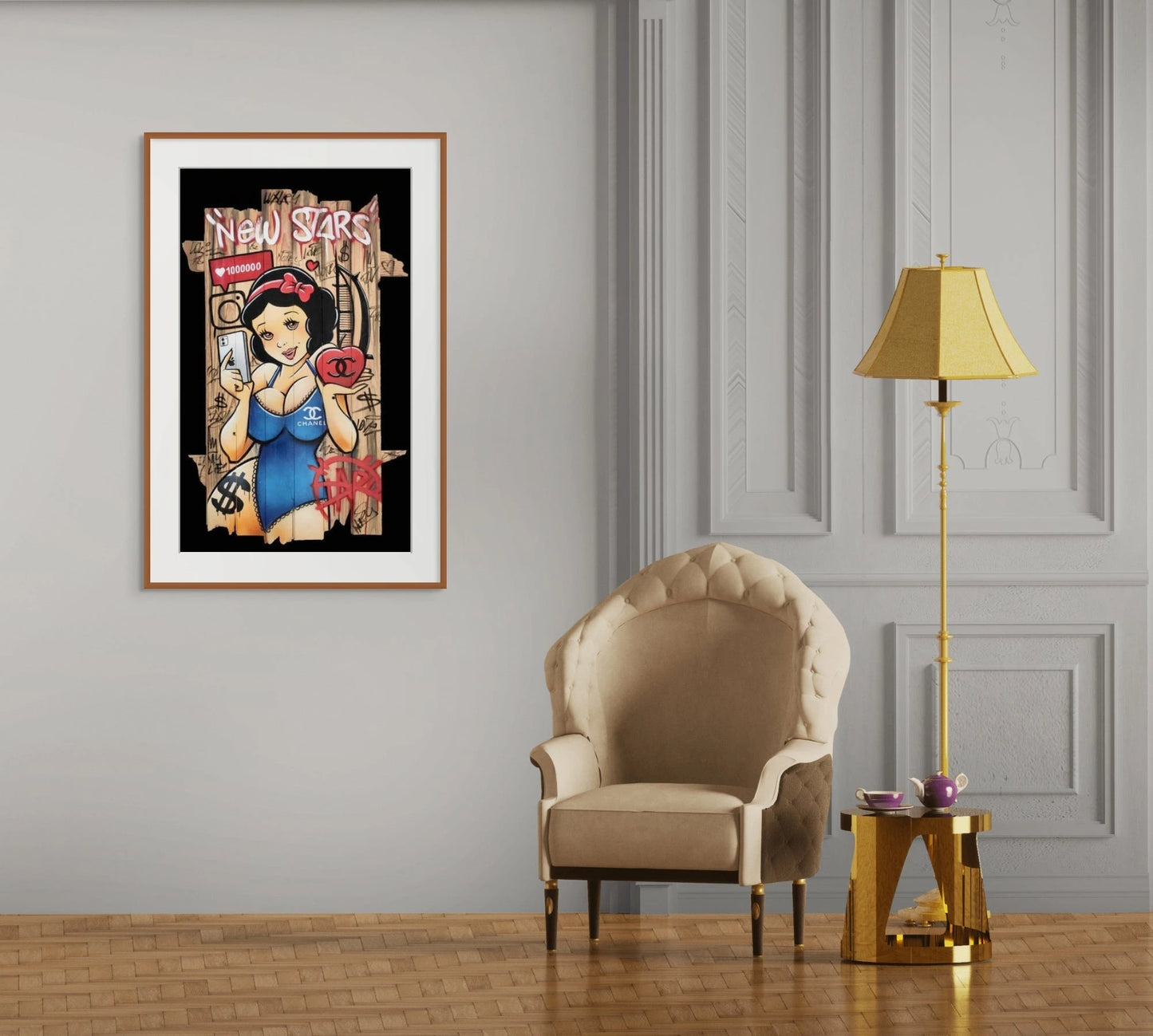 Daru's inspiration is drawn from a myriad of influences, encompassing everything from the rhythms of daily life to the grandeur of luxury brands. His artworks dance on the line between satire and homage, infusing familiar pop culture figures into opulent backdrops. The resulting compositions often carry a subtly comic and critical undertone, playing with the juxtaposition between ordinary characters and extraordinary settings.