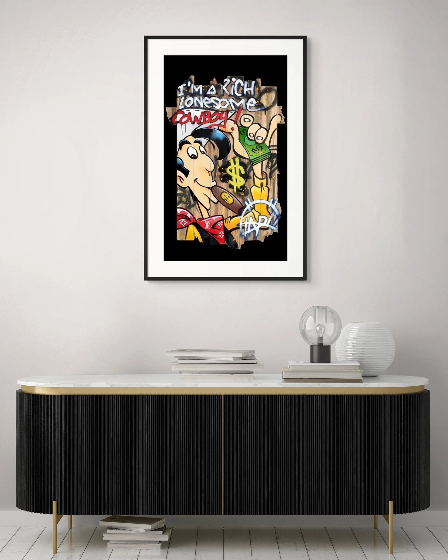 Daru's inspiration is drawn from a myriad of influences, encompassing everything from the rhythms of daily life to the grandeur of luxury brands. His artworks dance on the line between satire and homage, infusing familiar pop culture figures into opulent backdrops. The resulting compositions often carry a subtly comic and critical undertone, playing with the juxtaposition between ordinary characters and extraordinary settings.