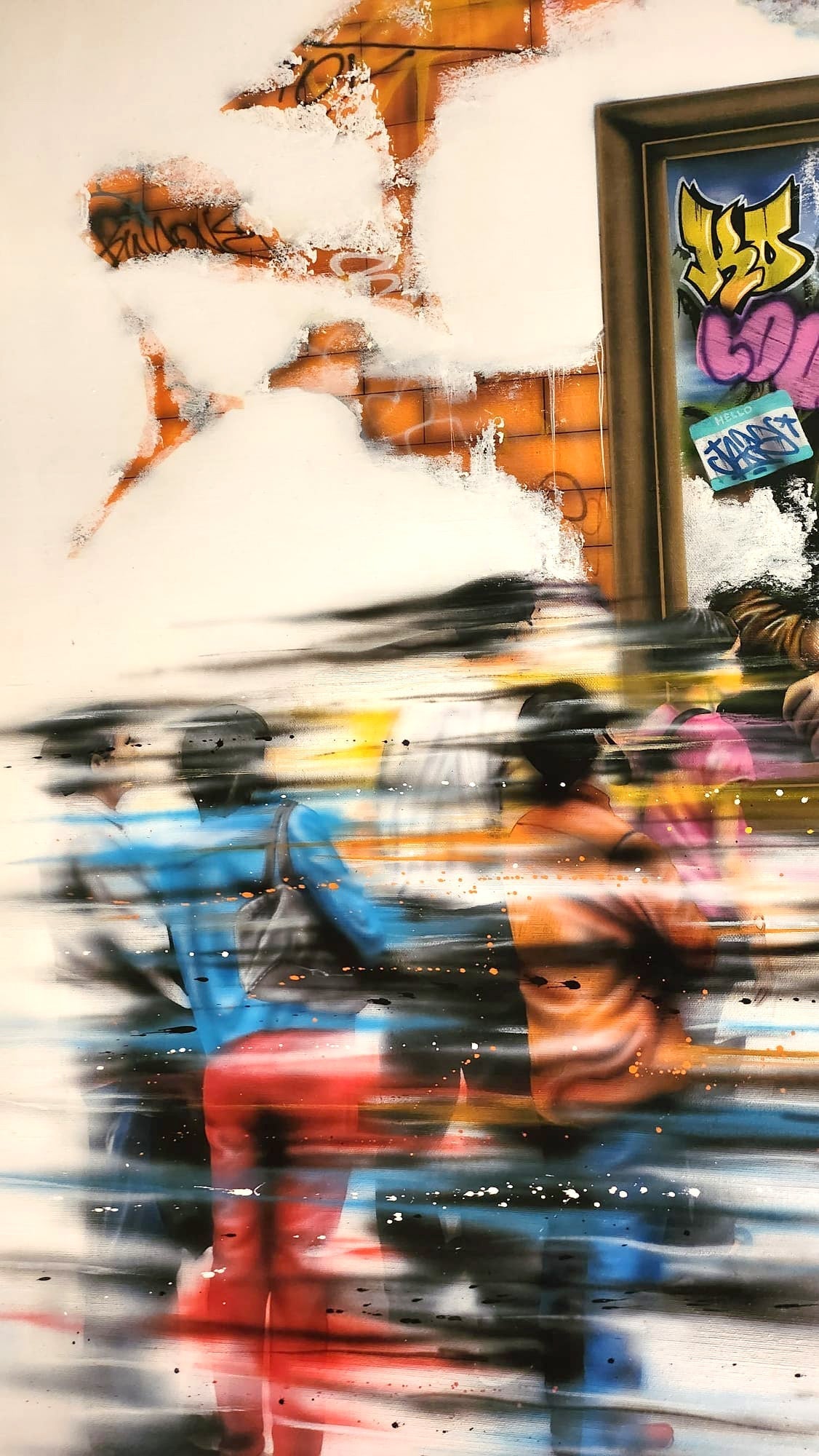 Little by little, he goes from the wall to the canvas, and it is pushed by his entourage, that he begins to show his work and exhibit his paintings according to his meetings in luxury hotels, restaurants, bars ...