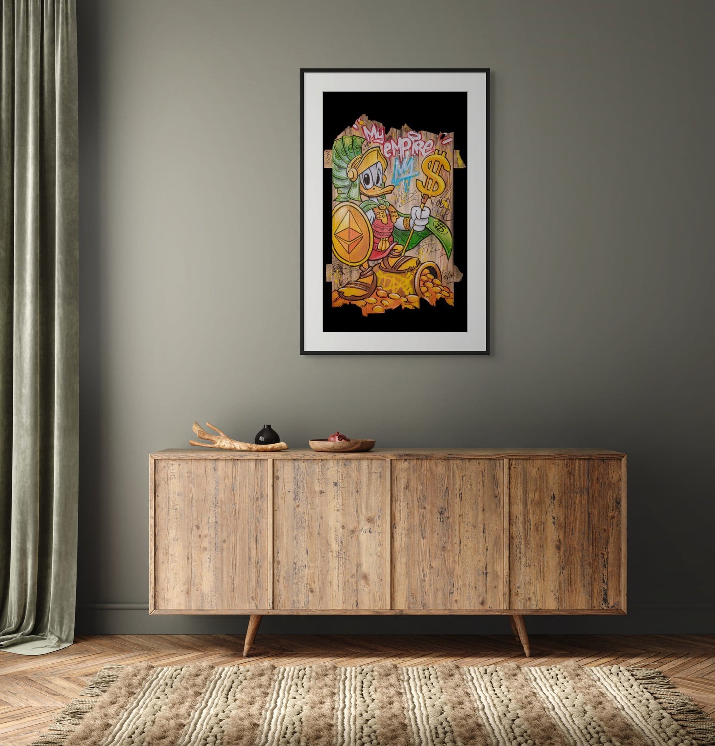 Daru's inspiration is drawn from a myriad of influences, encompassing everything from the rhythms of daily life to the grandeur of luxury brands. His artworks dance on the line between satire and homage, infusing familiar pop culture figures into opulent backdrops. The resulting compositions often carry a subtly comic and critical undertone, playing with the juxtaposition between ordinary characters and extraordinary settings.