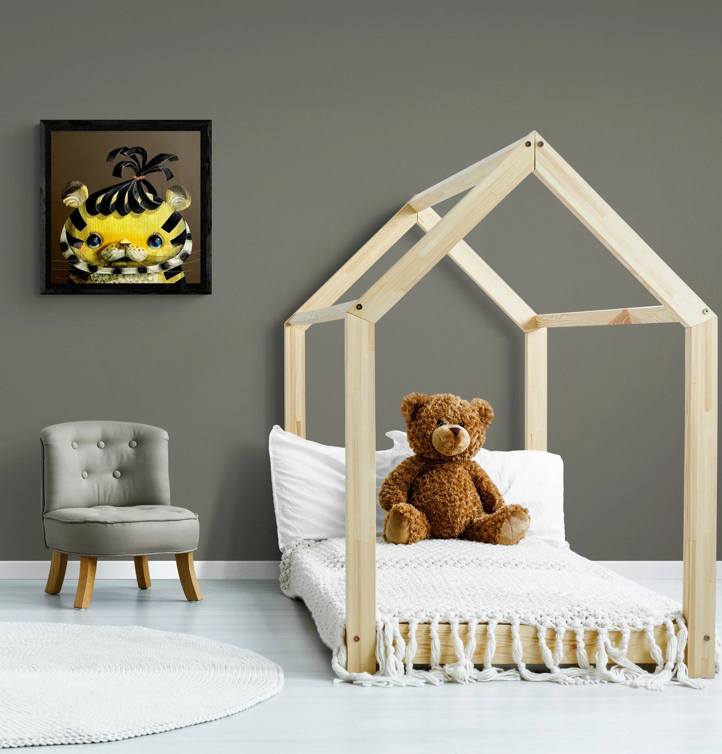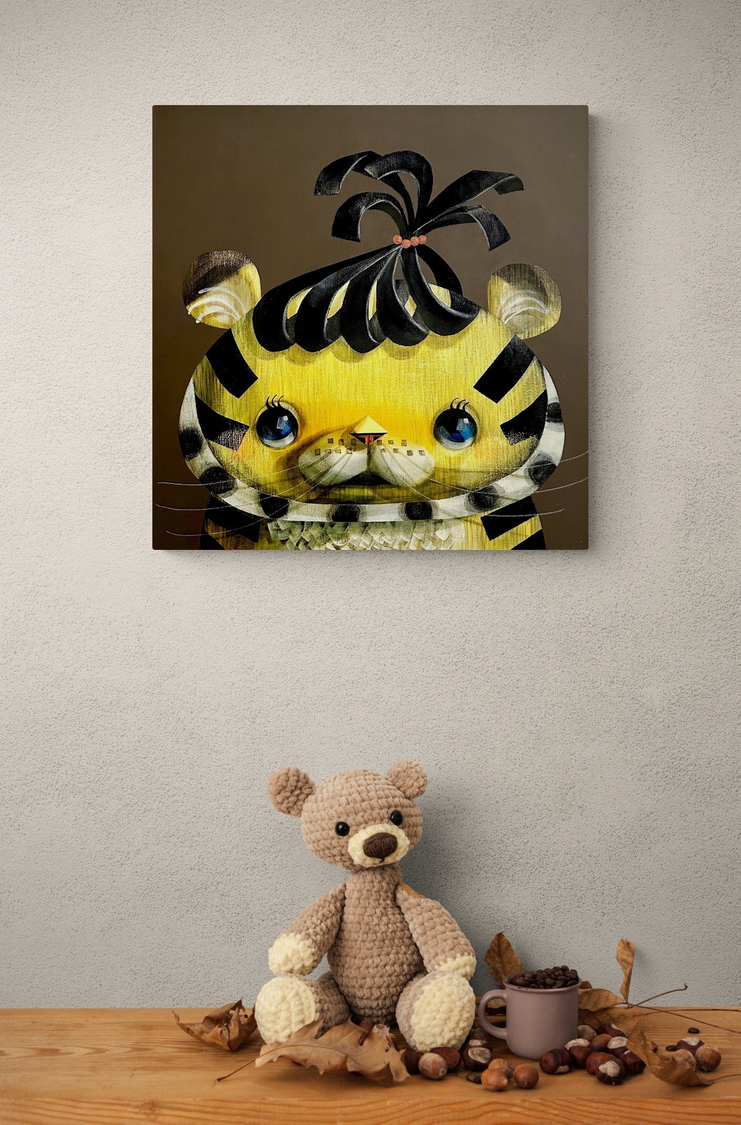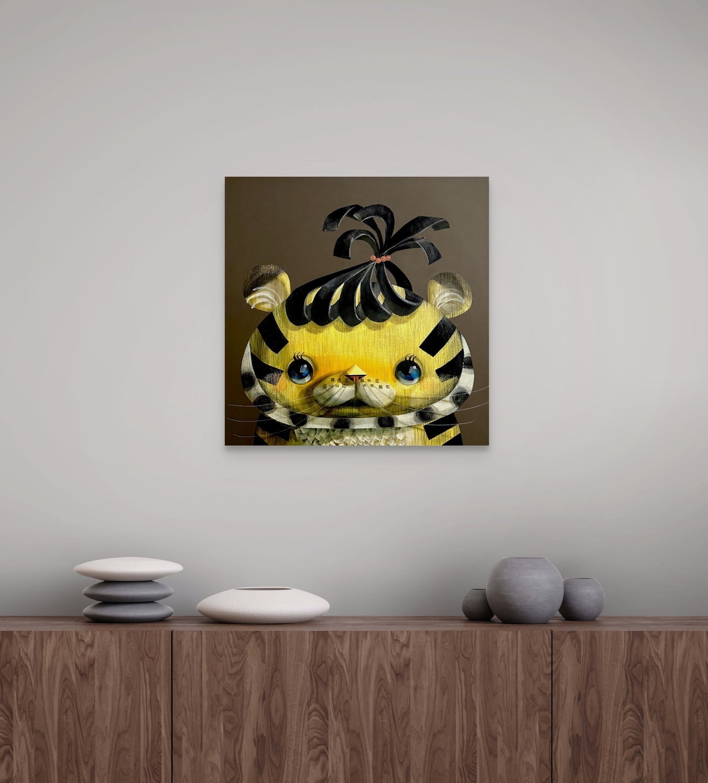 He uses a varied color palette but with restrained tones, which makes his works harmonize seamlessly within living spaces, as if they were an integral part of them. By employing animal shapes, he is able to depict human emotions while navigating between reality and imagination.