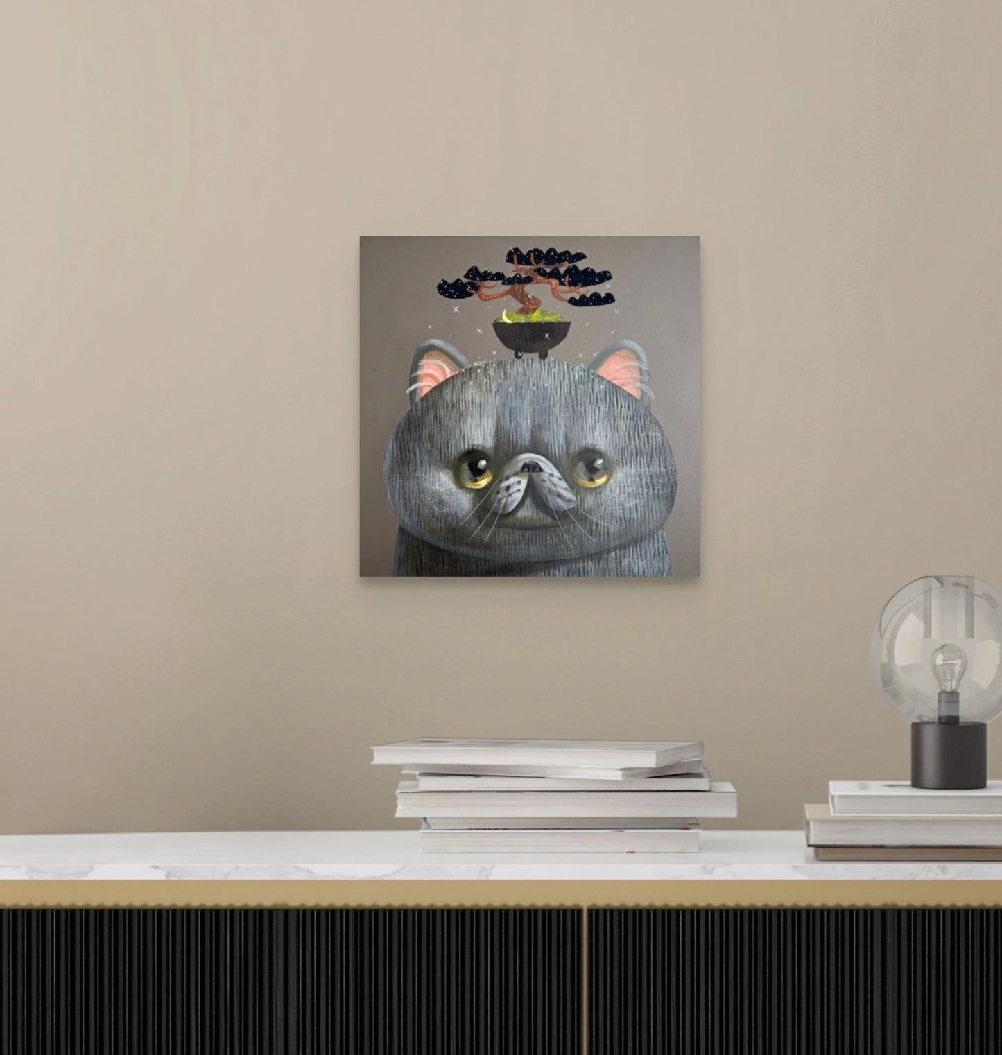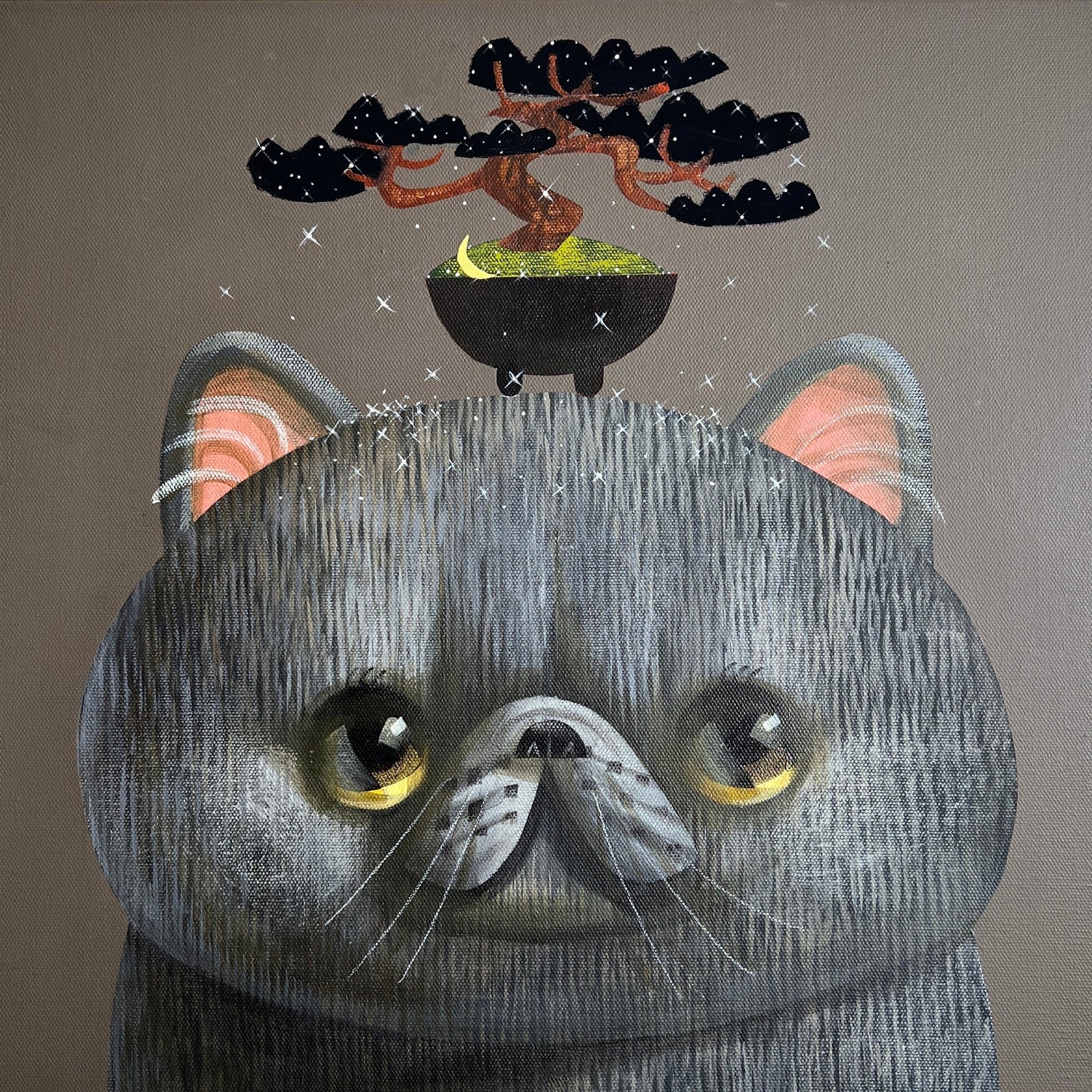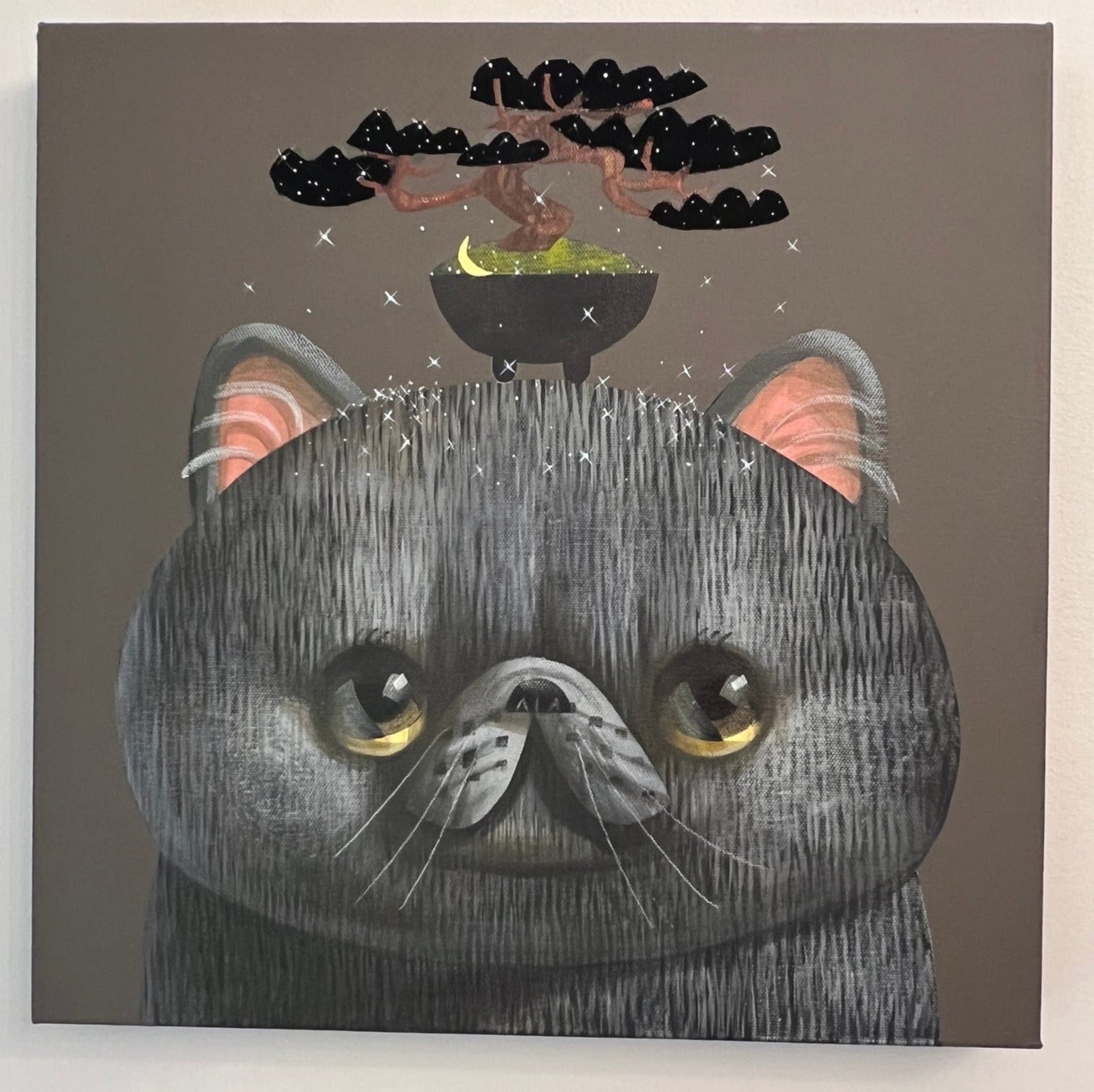 An original Painting by Akio Harada, part of the "Cats and Dogs" new collection that will be showcased on May 11 in Miami.