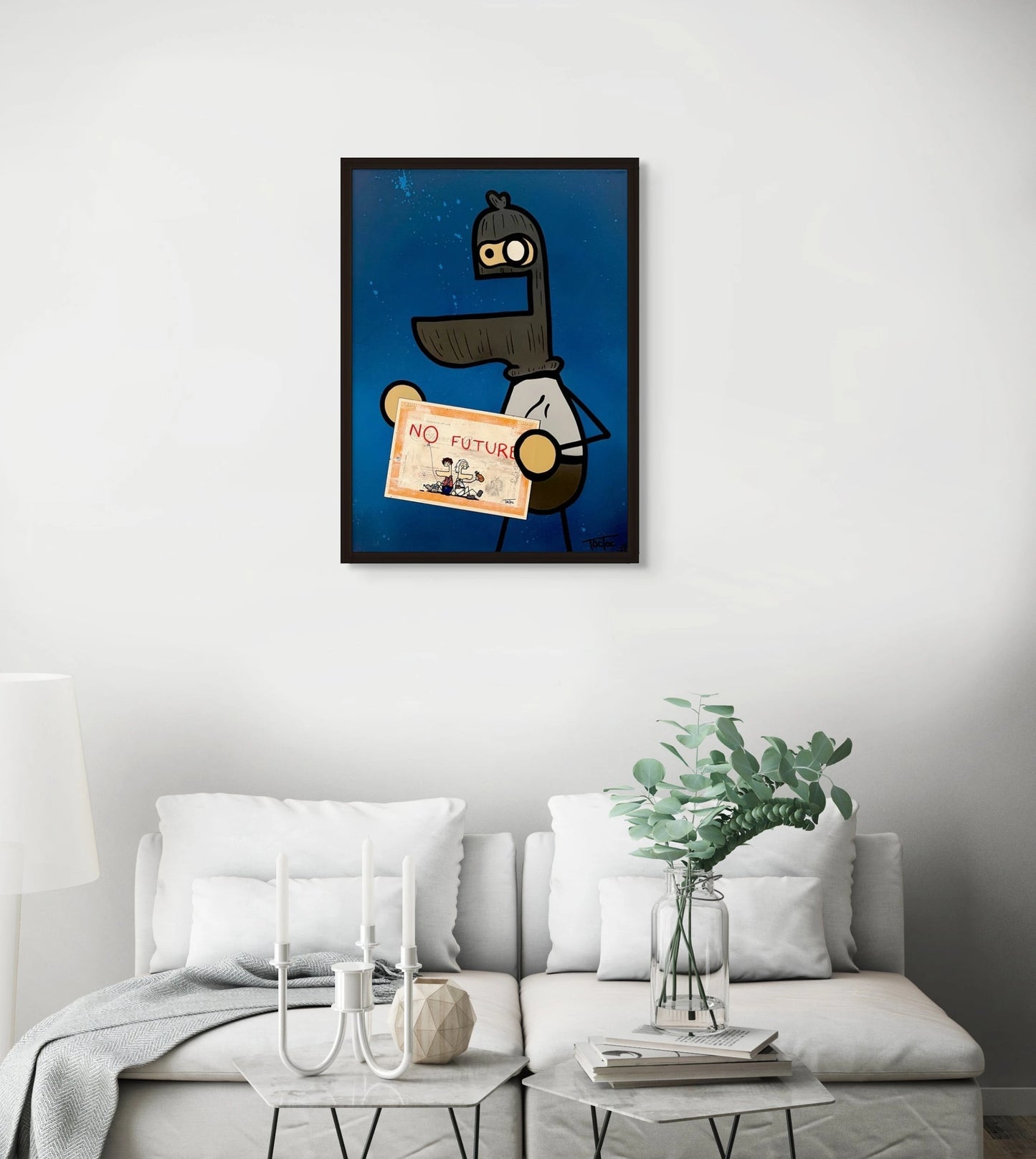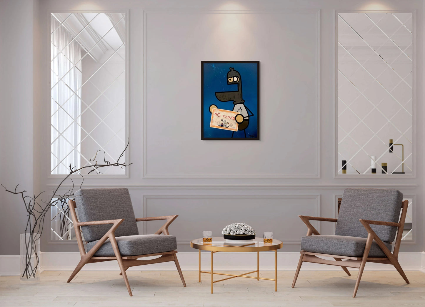 Original handmade painting on canvas with a vintage genuine stock certificate.
