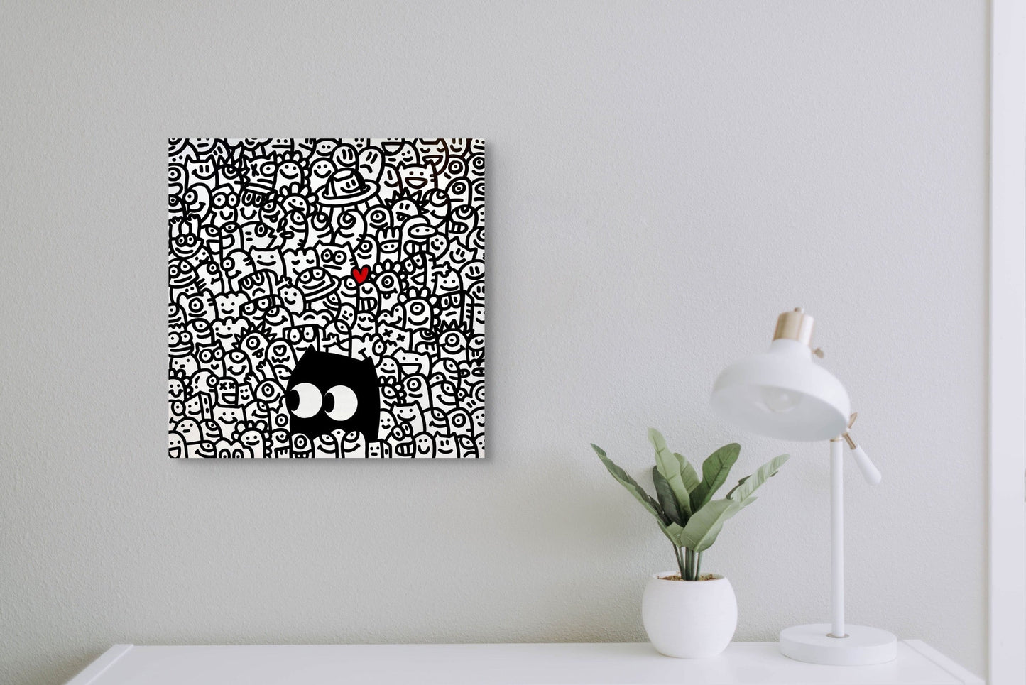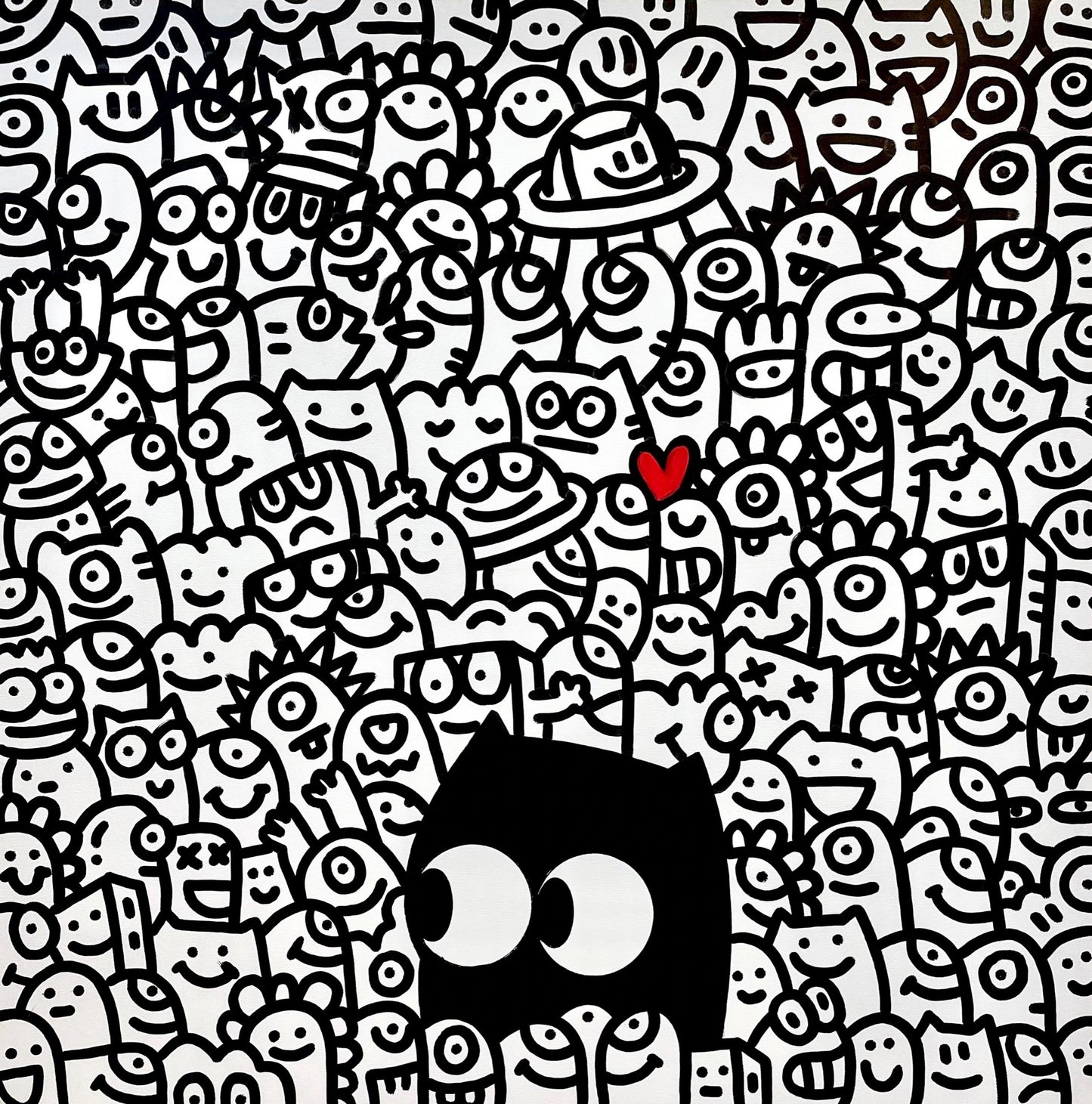 Although BBQUEEN finds the street to be the most natural and expressive form of artistic expression, she also paints the world of the Confused Cat on canvas. The character's universe is a chaotic yet emotionally charged one that resonates with audiences from all walks of life.
