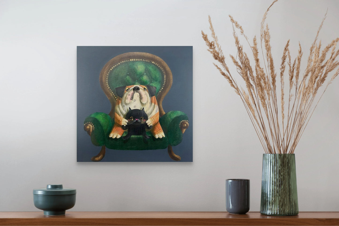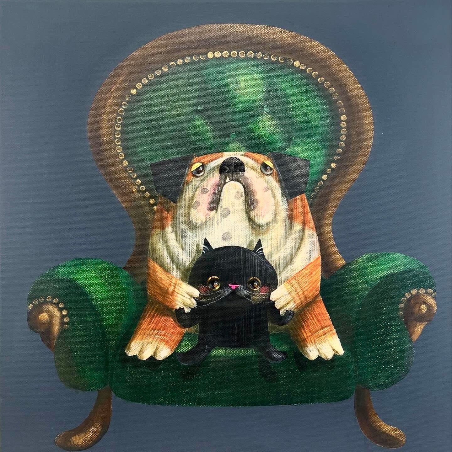 An original Painting by Akio Harada, part of the "Cats and Dogs" new collection that will be showcased on May 11 in Miami.