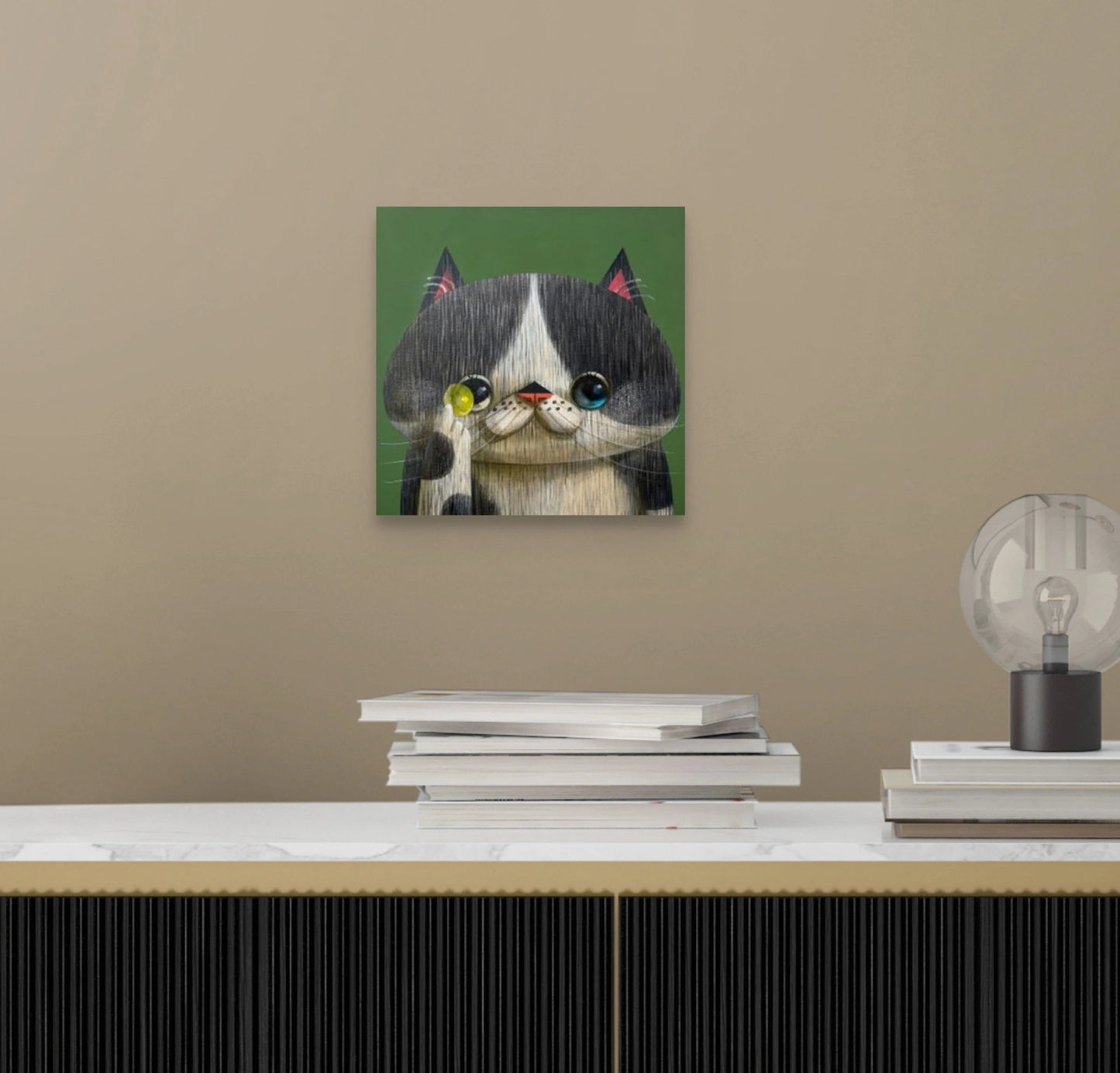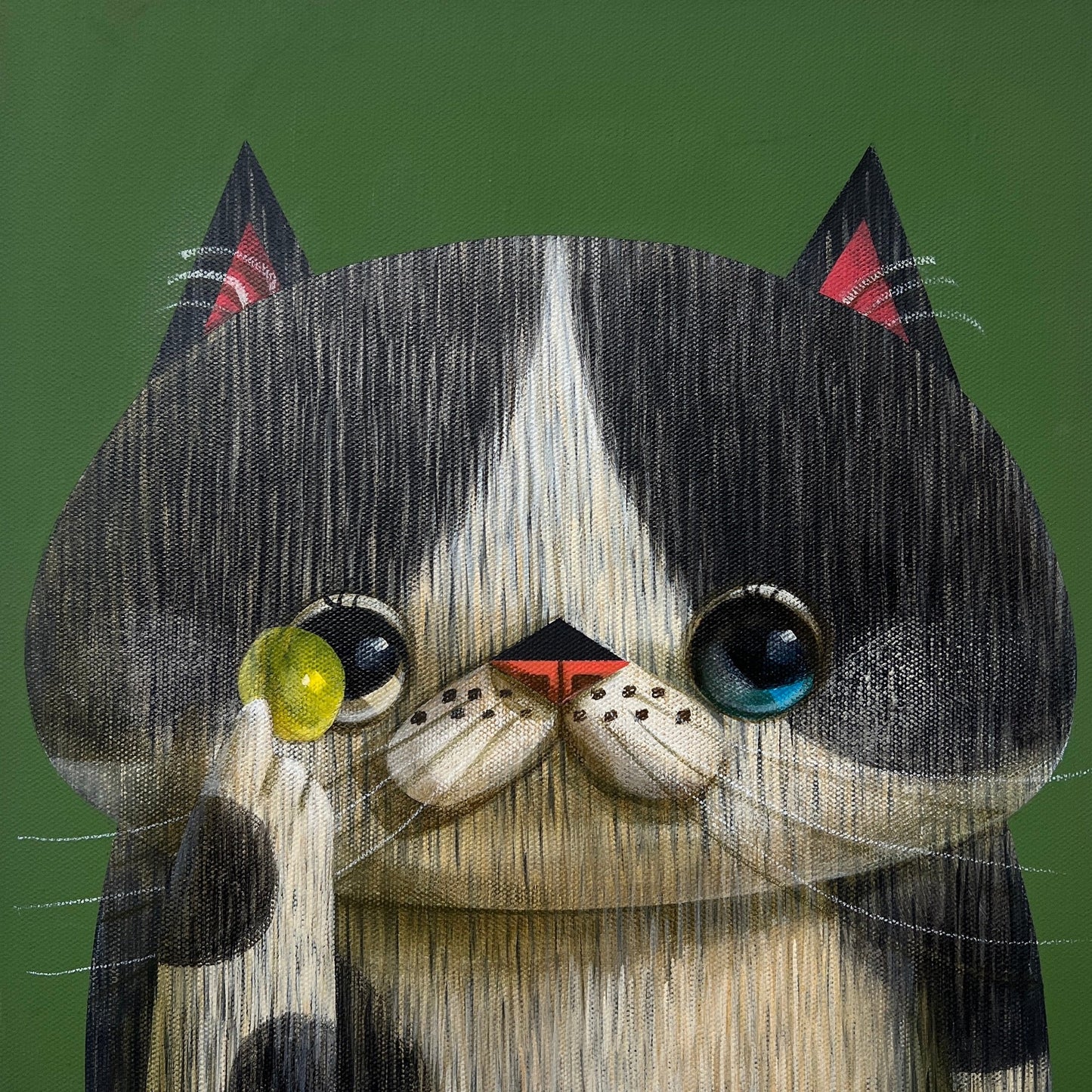 An original Painting by Akio Harada, part of the "Cats and Dogs" new collection that will be showcased on May 11 in Miami.