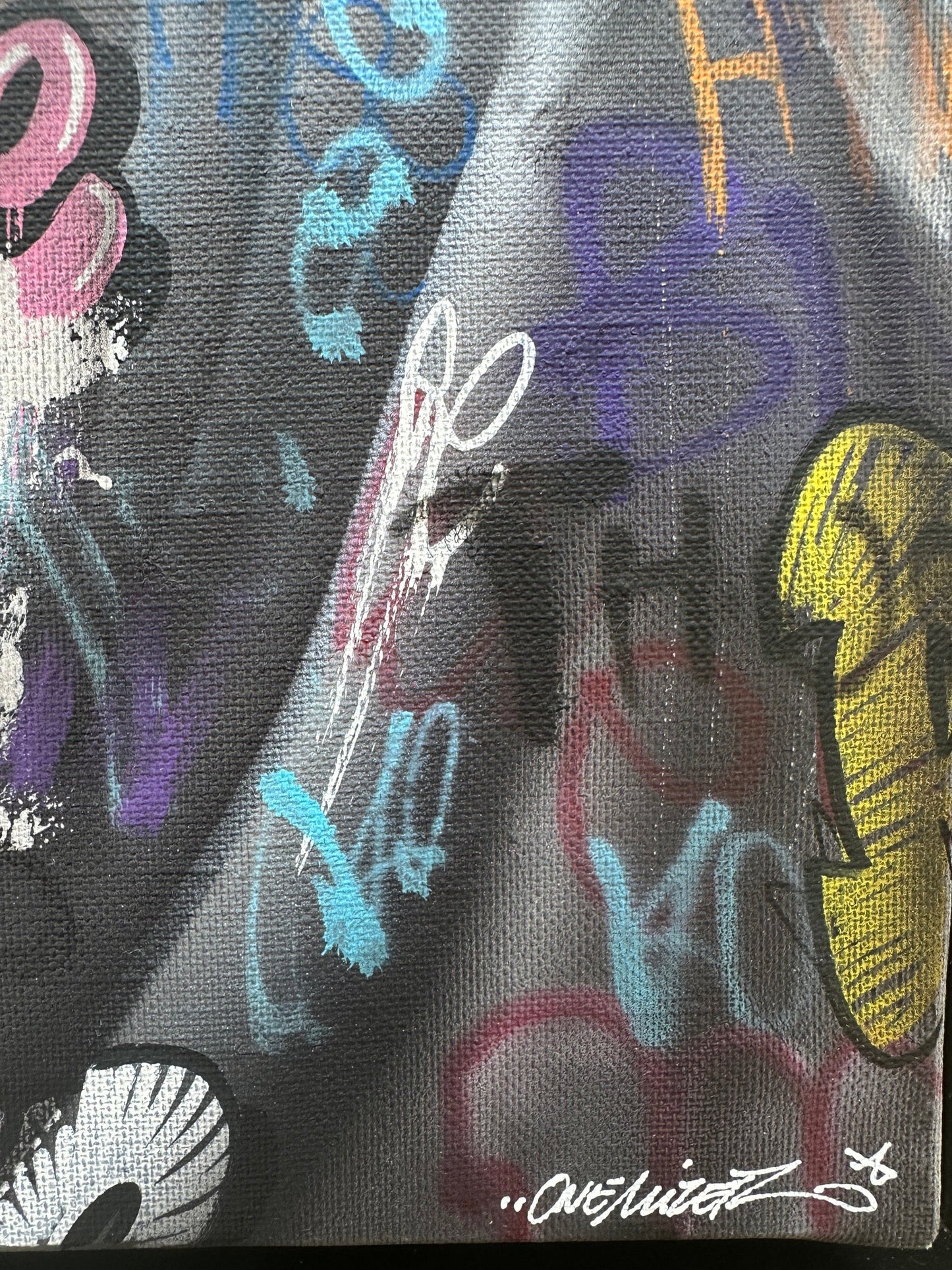 Little by little, he goes from the wall to the canvas, and it is pushed by his entourage, that he begins to show his work and exhibit his paintings according to his meetings in luxury hotels, restaurants, bars ...
