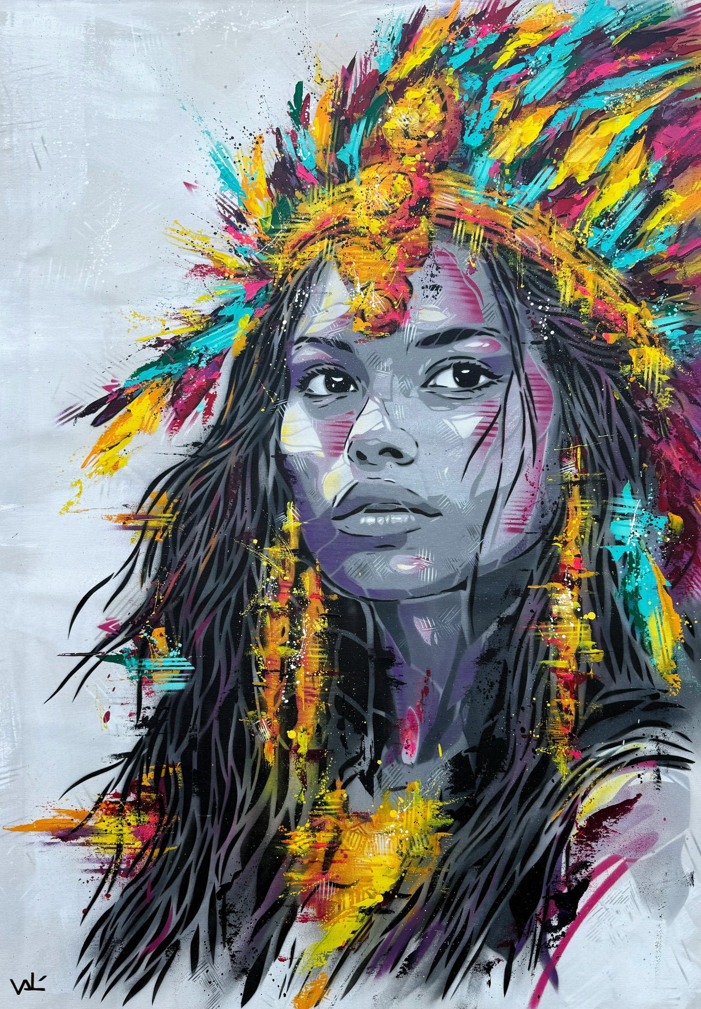 His art blends traditional portraiture with a colorful, street-art aesthetic, showcasing his experiences and thoughts through his lens. In addition to cultures, VALÉ is dedicated to representing global issues in his paintings.