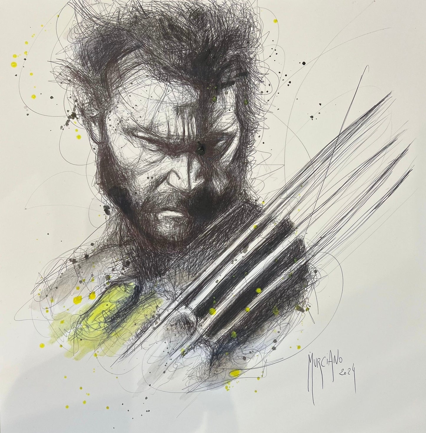 Patrice Murciano's 'Deadpool' is a pencil-on-paper masterpiece that skillfully sketches the Super Hero's brooding visage with intricate, raw lines, showcasing a vigilant gaze.