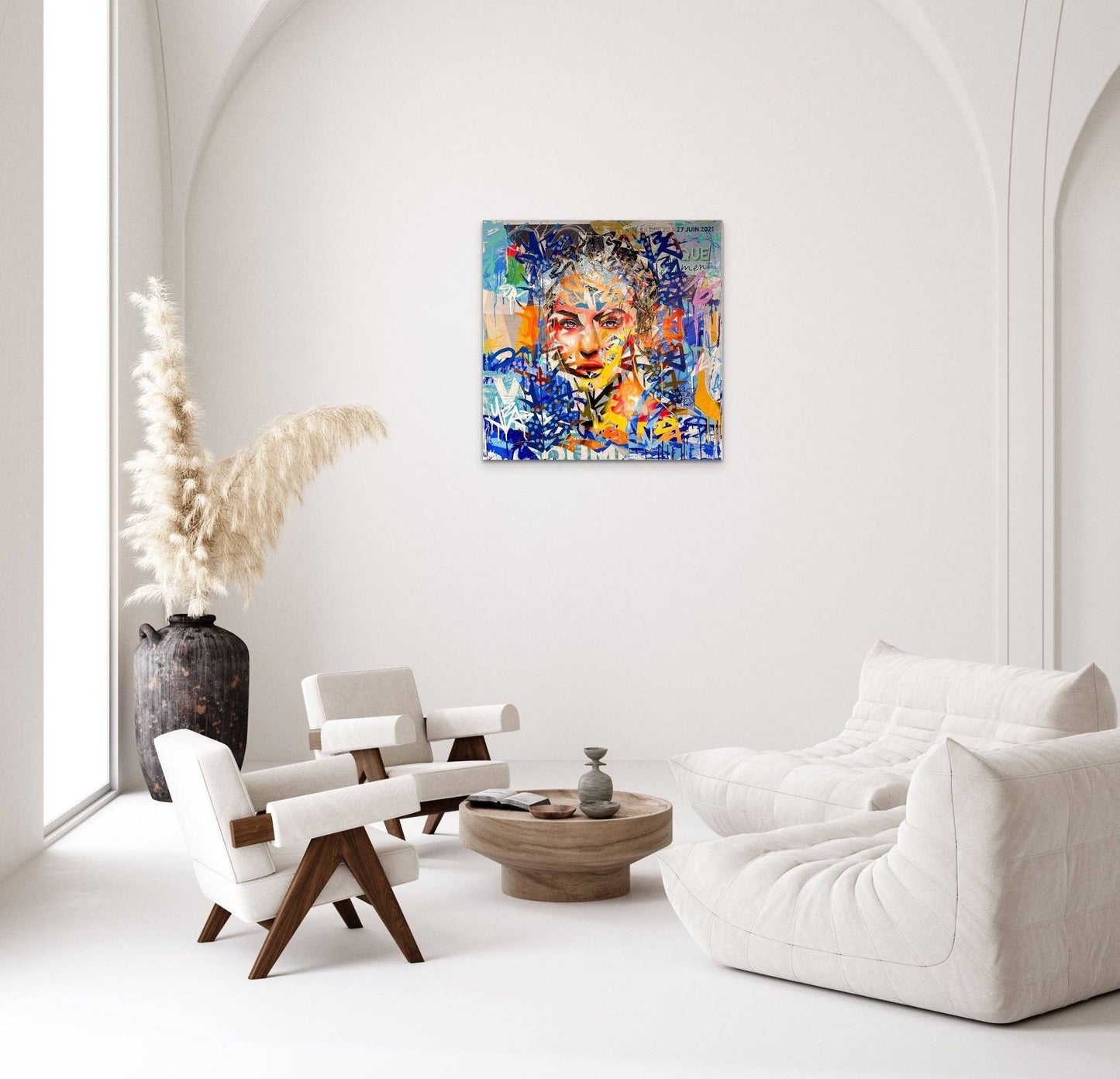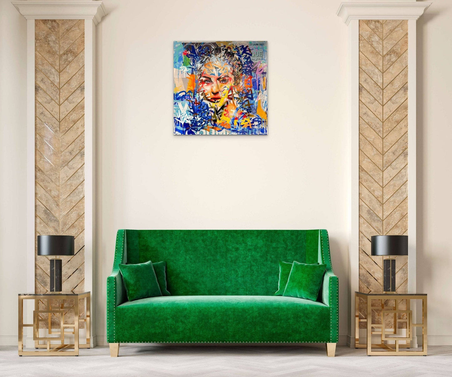 YBA's distinctive style draws inspiration from urban and pop art, blending techniques such as acrylics, aerosol, collage, and even digital creations. His artwork often features faces, reflecting the world he observes in the streets and contemporary society.