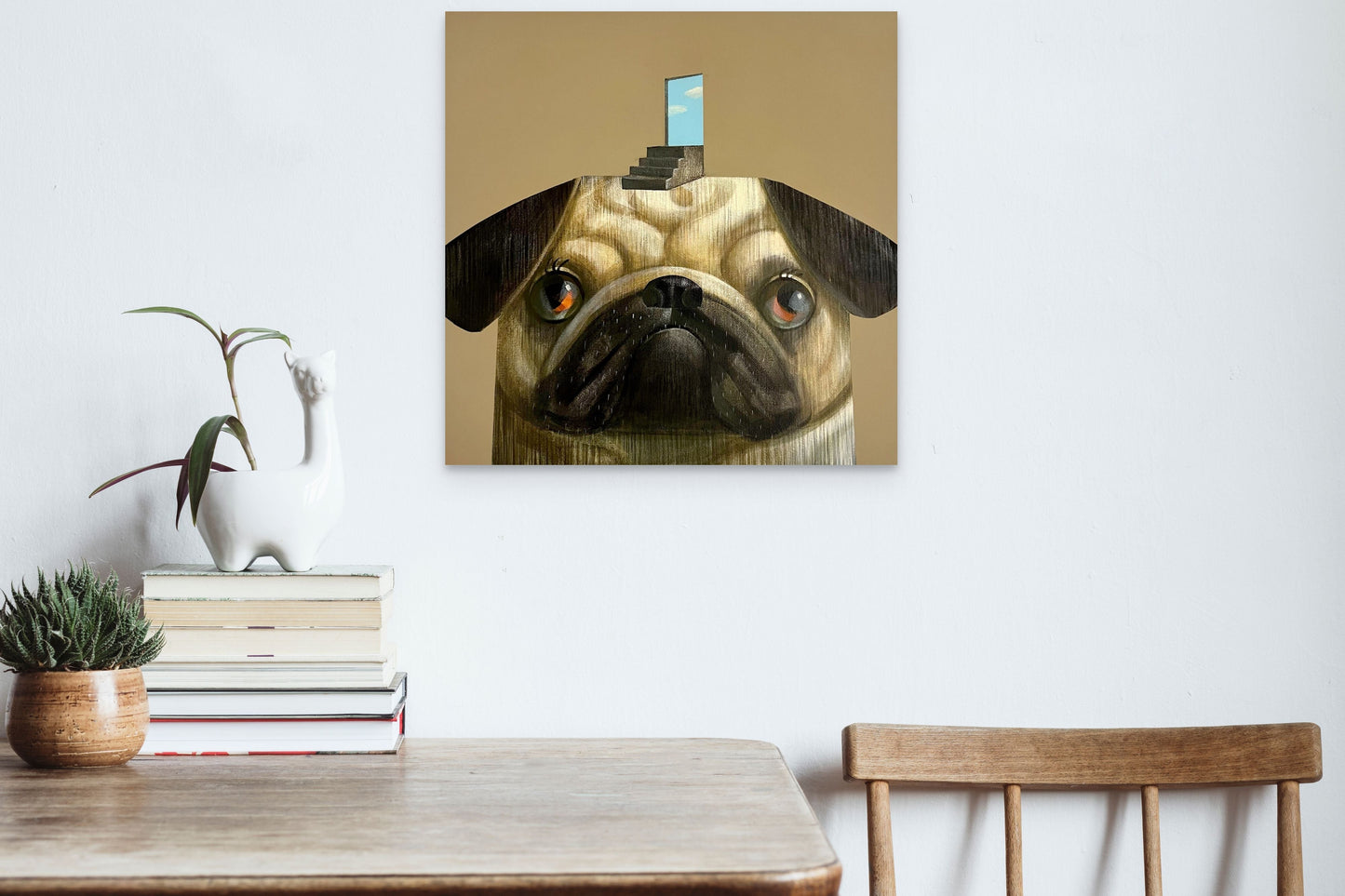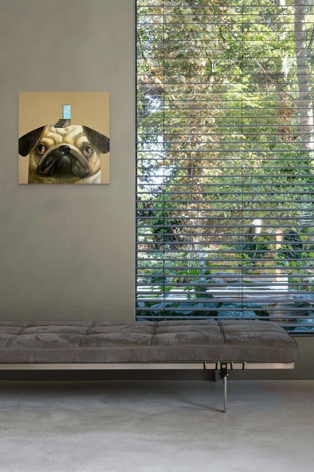 He uses a varied color palette but with restrained tones, which makes his works harmonize seamlessly within living spaces, as if they were an integral part of them. By employing animal shapes, he is able to depict human emotions while navigating between reality and imagination.
