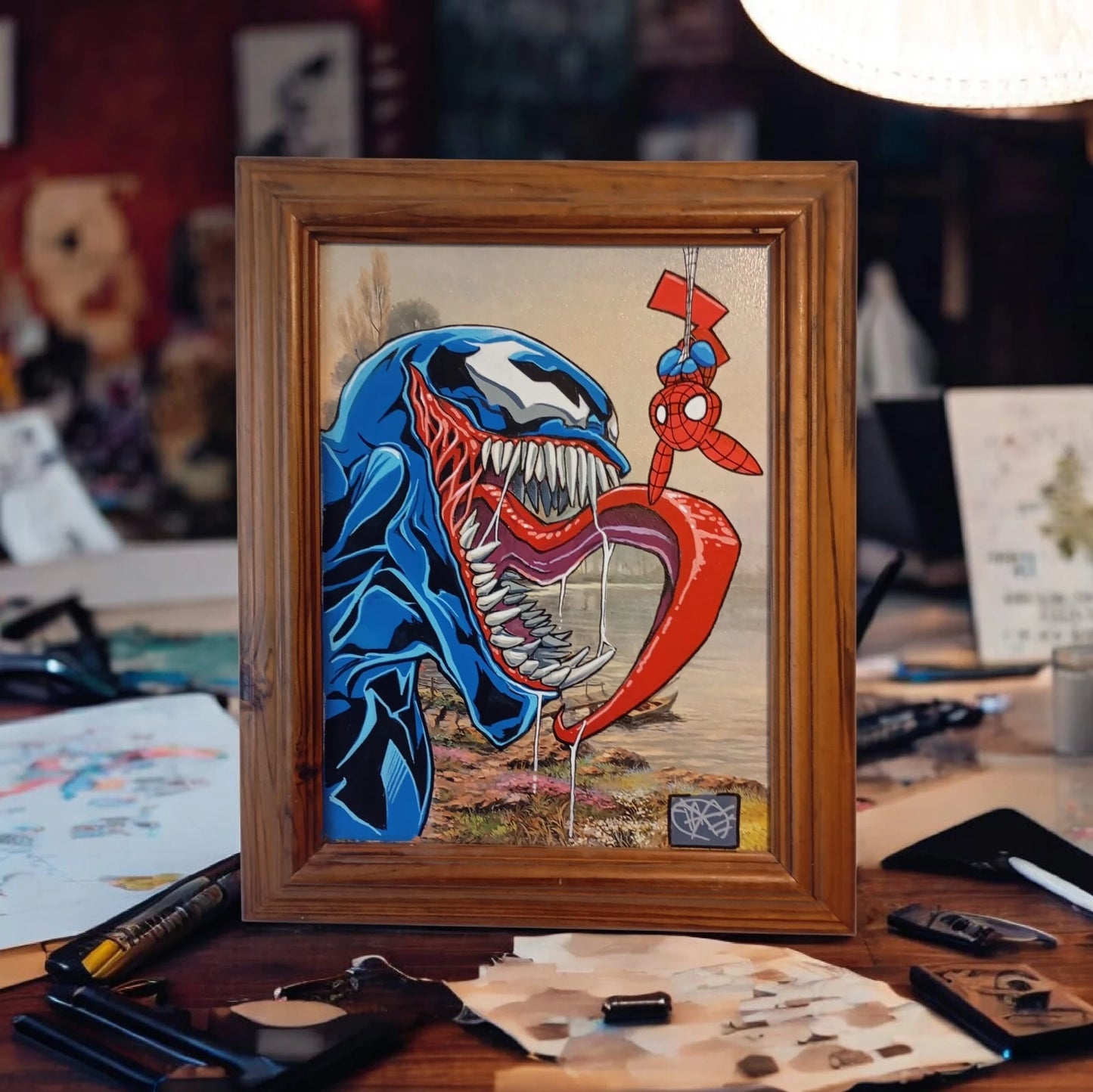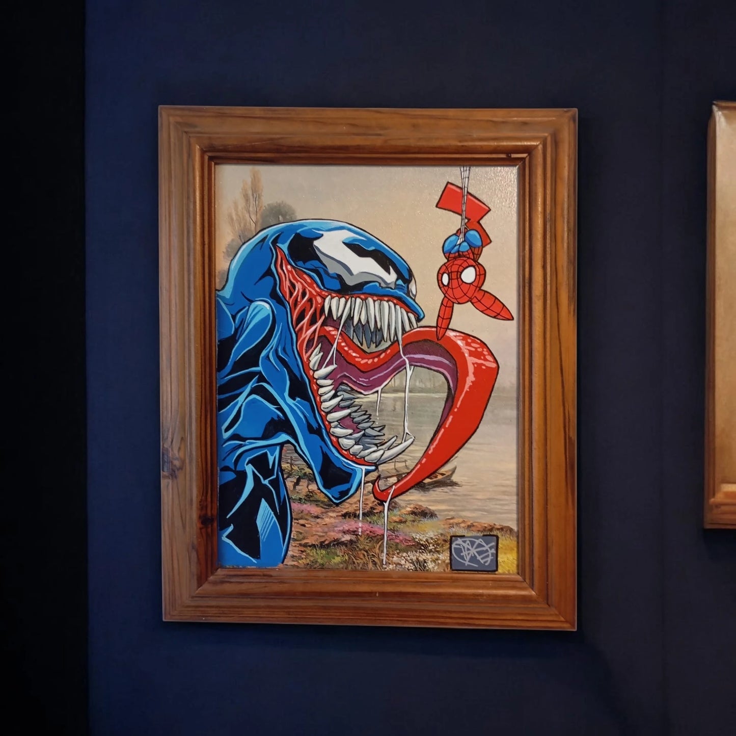 His recent work breathes new life into vintage paintings by seamlessly integrating pop culture characters into their classical layouts. These surprising artistic intersections between old and new create a riveting dialogue that is both visually stunning and thought-provoking.