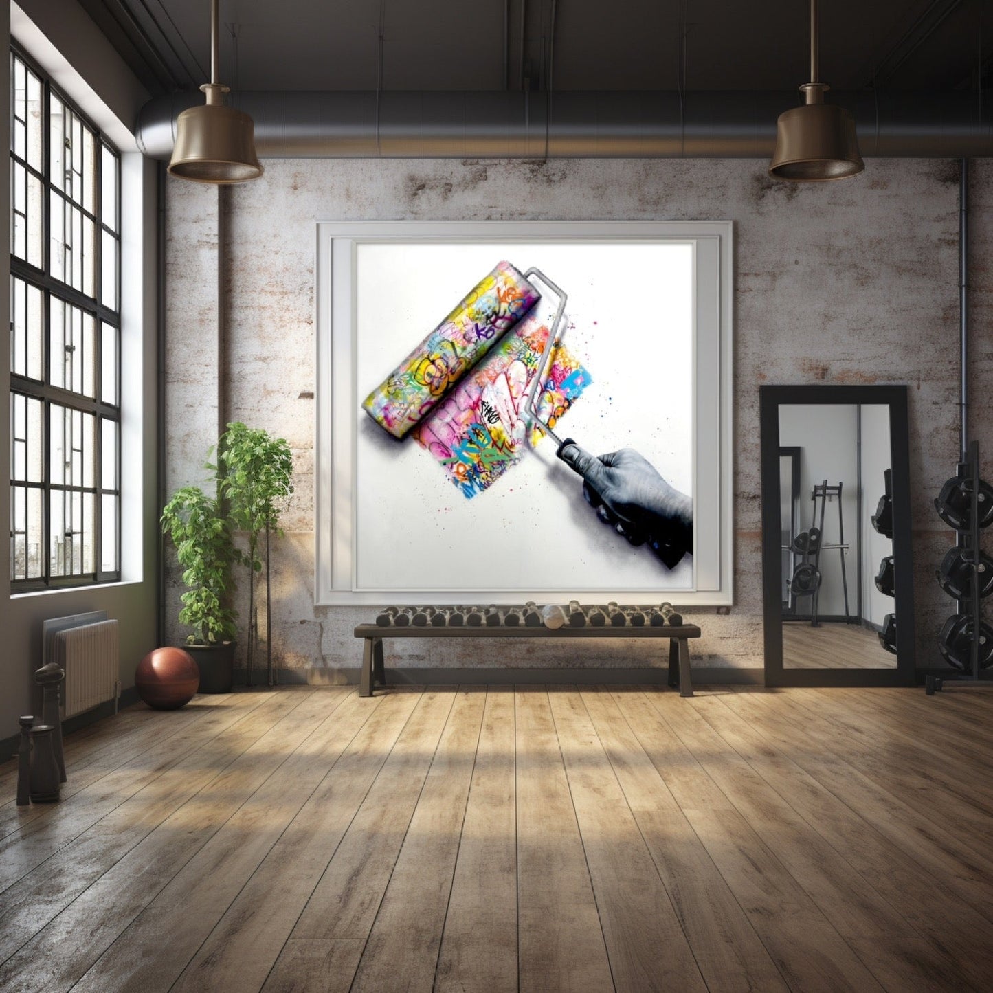 "Roll Your Style & Color Your Life" is a captivating artwork by the renowned French street artist, Onemizer. At a striking size of 200x200cm (6.5 x 6.5 ft), this piece delivers a compelling message about the transformative power of art and creativity.